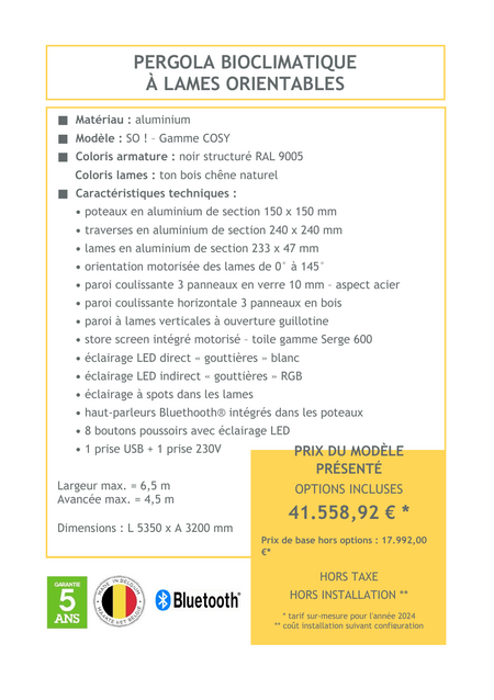 La pergola bioclimatique en aluminium allie élégance et innovation pour créer un espace extérieur adaptable en toute saison. Grâce à ses lames orientables, vous pouvez moduler l'ensoleillement et la ventilation selon vos envies, offrant confort et protection contre les intempéries. Transformez votre terrasse en un lieu de détente moderne et accueillant, tout en profitant d'une structure durable et sans entretien.